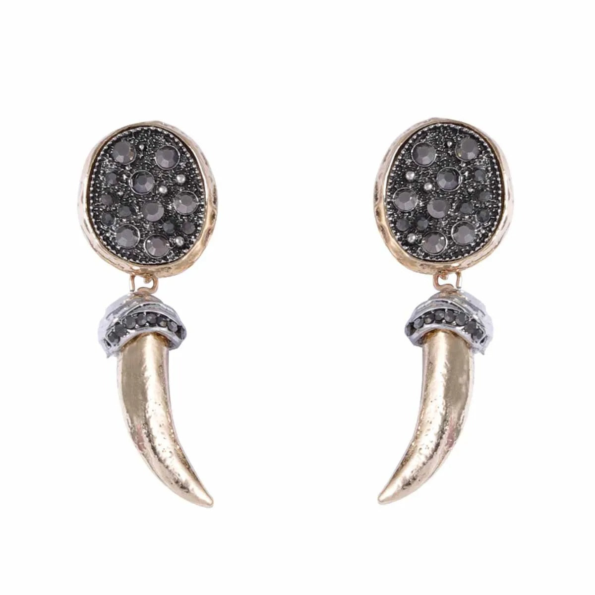 New Vintage Metal Horn Dangle Earrings with Rhinestones Women