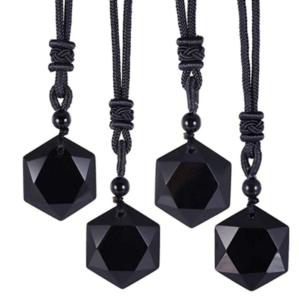 Obsidian Hexagram Pendant Necklace For Protection Natural Black Lucky Stone Star Amulet Pendants Fashion Jewelry For Men Women