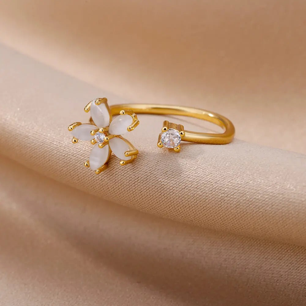 Opal Flower Rings For Women Cubic Zirconia Openning Stainless Steel Flower Ring Wedding Floral Aesthetic Jewelry anillos mujer