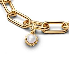 Bring a touch of radiance and elegance to your jewelry with the Pandora ME Treated Freshwater Cultured Pearl Sun Mini Dangle Charm. This delicate charm features a shimmering pearl nestled in a sun-shaped design, symbolizing warmth, clarity, and light. Its mini dangle style is perfect for adding subtle beauty and personal meaning to your Pandora ME link bracelets, necklaces, or earrings.