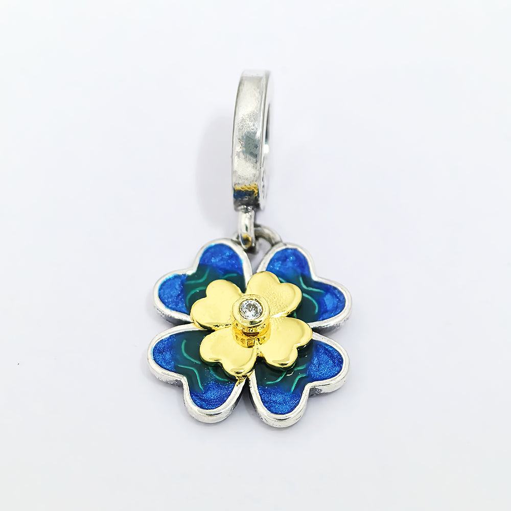 Bring a little extra luck and sparkle to your jewelry collection with the Pandora Spinnable Four Leaf Clover Dangle Charm. Beautifully crafted in warm 18k gold-plated unique metal blend, this charm features a spinnable four-leaf clover design, symbolizing luck, hope, and positivity.