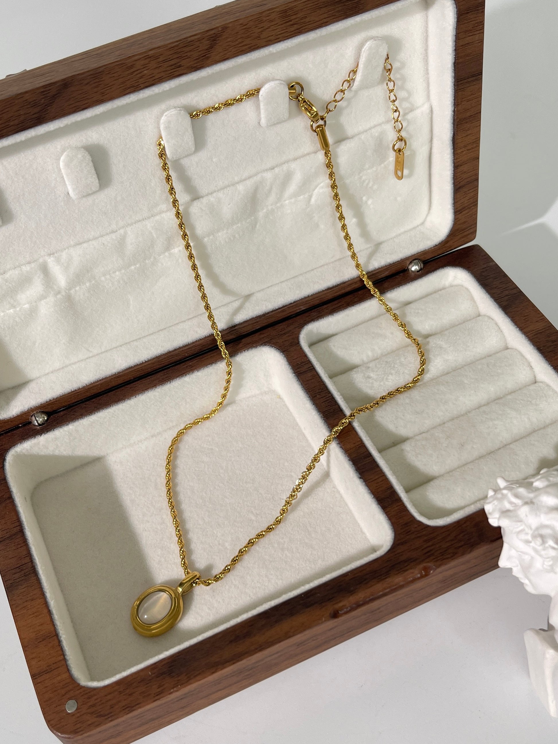 Peri'sbox Stainless Steel 18K Gold Pvd Plated Black White Gem Stone Oval Pendant on Twist Rope Chain Necklace Stacking Jewelry