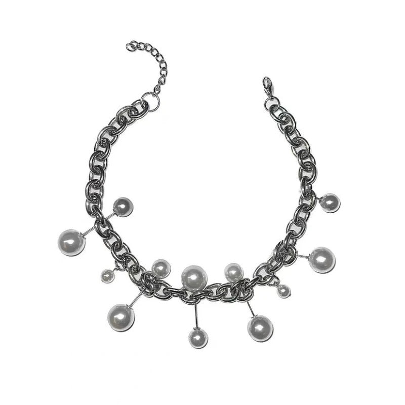 Personalized Punk Style Chain Imitation Pearl Necklace, Women's Fashion Trend Holiday Party Accessories Gift