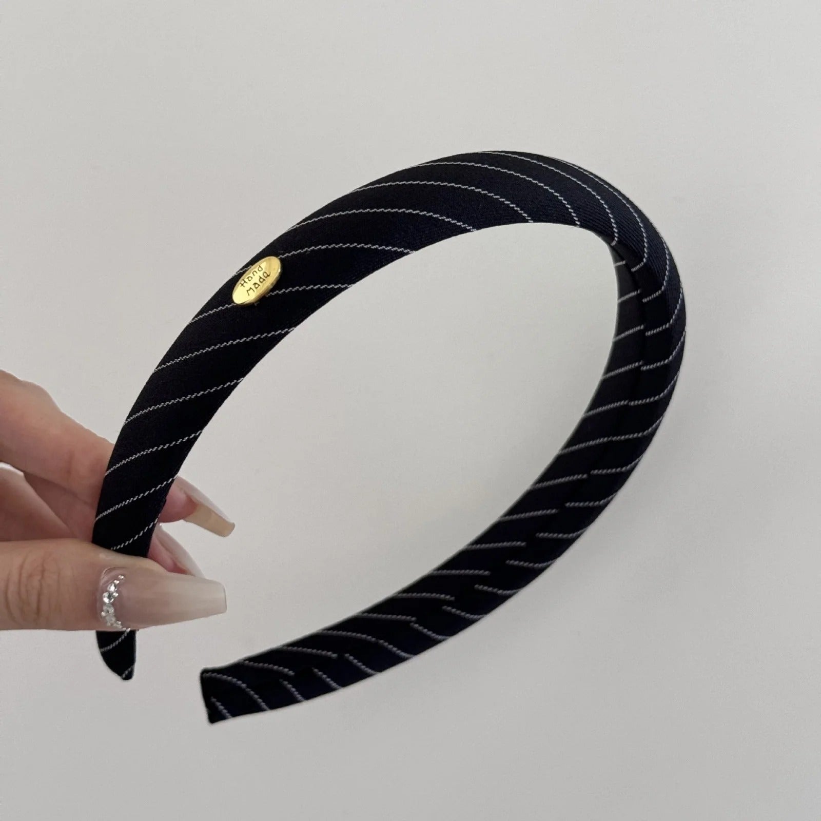 Preppy Striped Headband Gold Accents Hairband Women & Teens