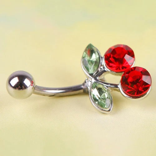 Pretty Rhinestone Red Cherry Navel Belly Button Barbell Ring Body Piercing