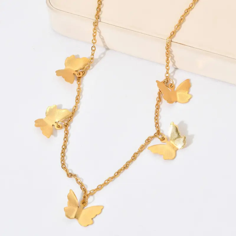 Punk Butterfly Choker Necklace Gold Stainless Steel Statement Jewelry for Women