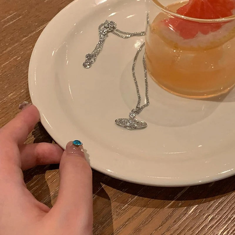 Shining Planet Titanium Steel Necklace Women's Light Luxury Advanced Design Sense Niche Sweet Cool Clavicle Neck Chain Jewelry