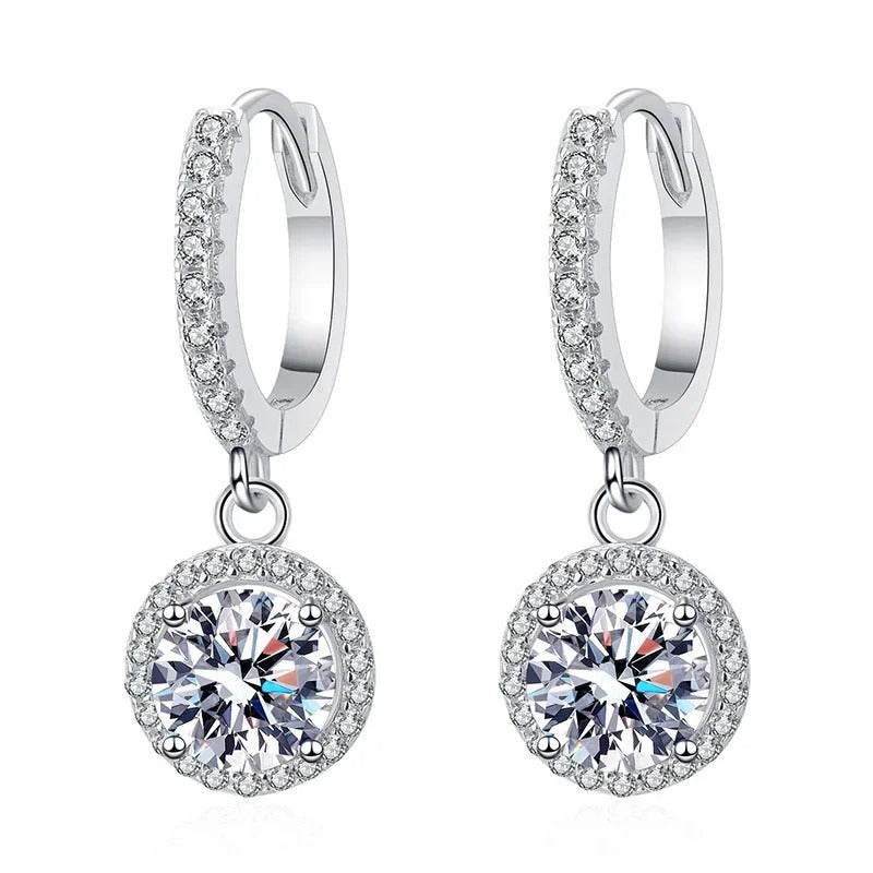Silver 1 Carat Moissanite Round Earrings Engagement Wedding Daily Work Party Travel Luxurious Gift For Women