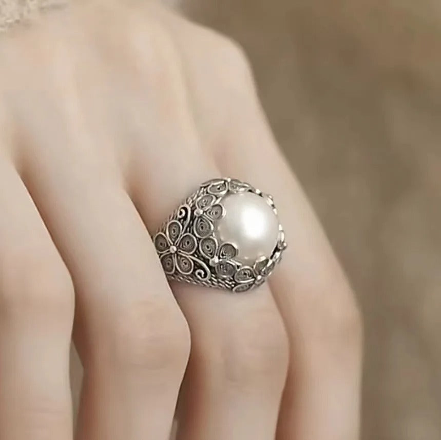 Elegant silver ring with intricate vintage flower design for a timeless look