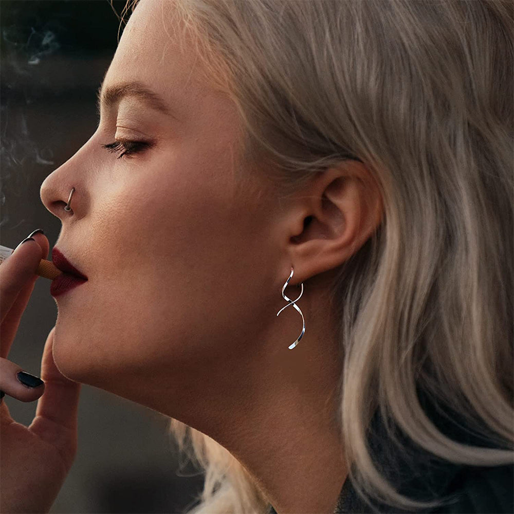 Simple Spiral Threader Earrings Irregular Helix Wave Curve Ear Line Cuff Stainless Steel Dangling Earring Women Fashion Jewelry