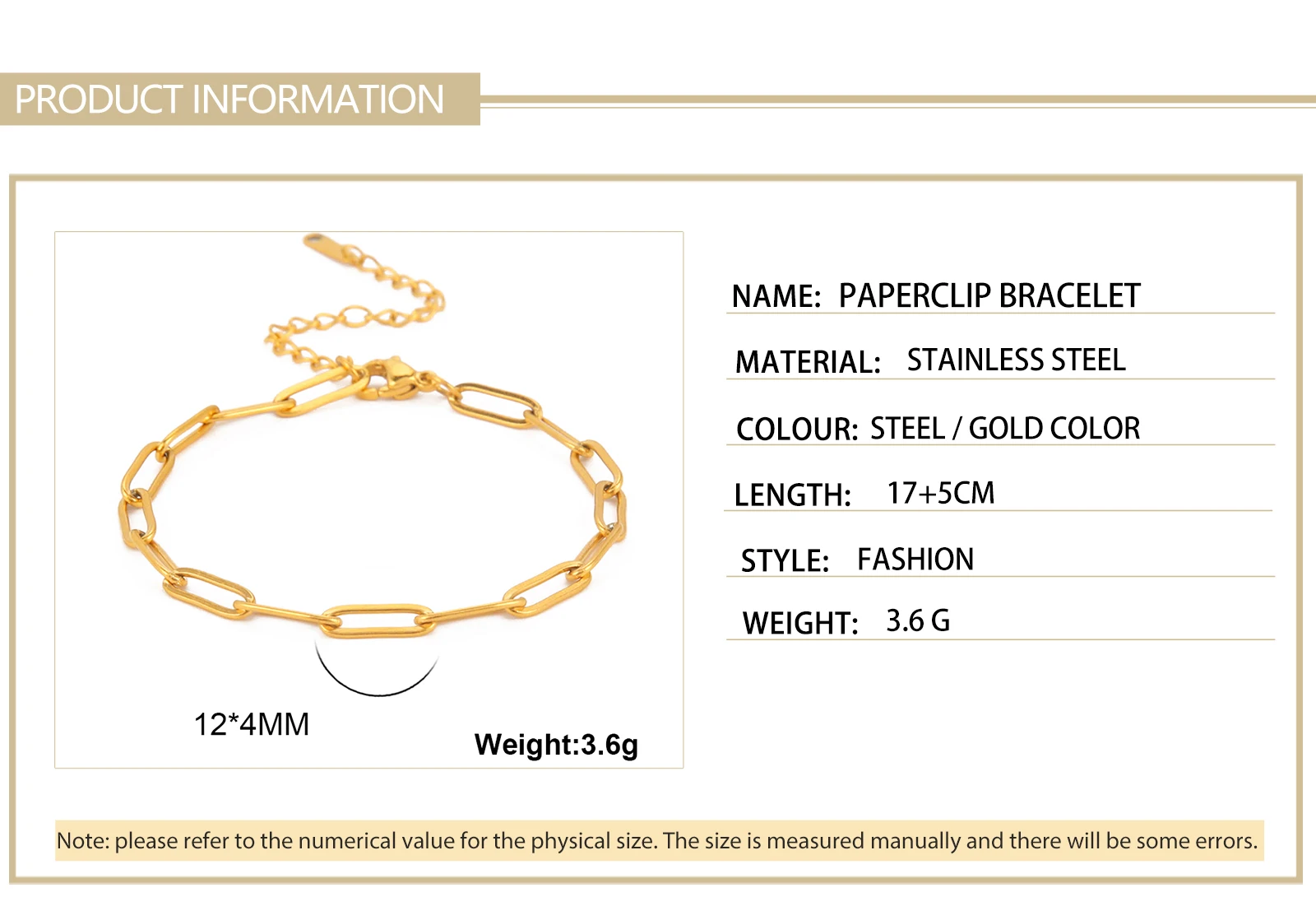 Skyrim Friendship Paperclip Link Chain Women Girls Stainless Steel Gold Color Bracelets 2025 Minimalist Jewelry Valentine Gift