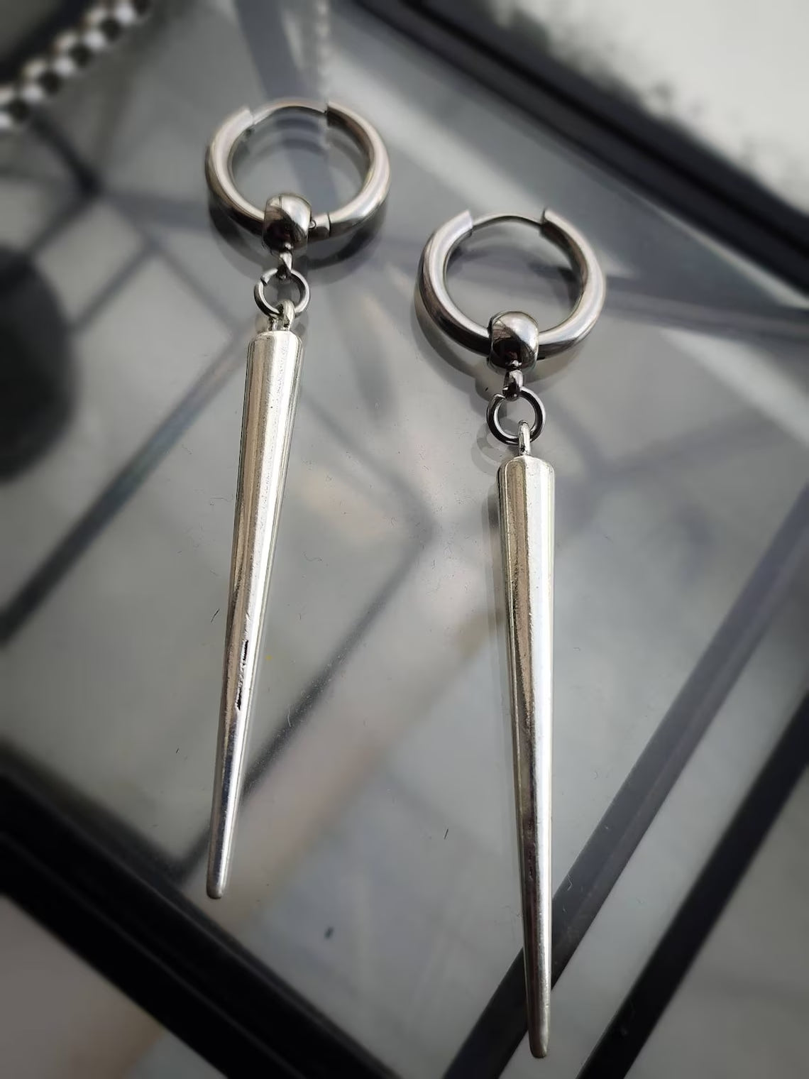 spike huggie hoop earrings, large spike, gothic earrings, punk, emo, alternative, women's earrings, mens jewelry