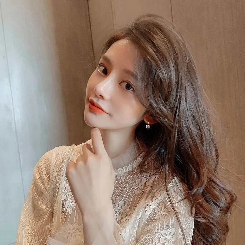 Square Crystal Stone Earrings Women Gold Plated Clear & Black Jewelry
