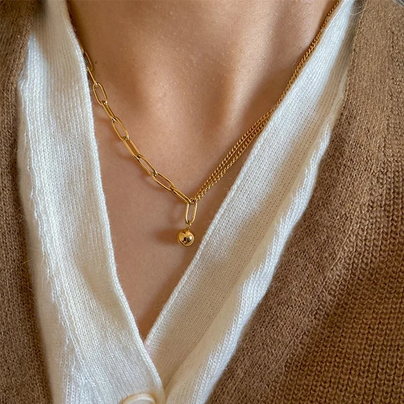 Stainless Steel Bead Necklace Women’s Titanium Chain Jewelry