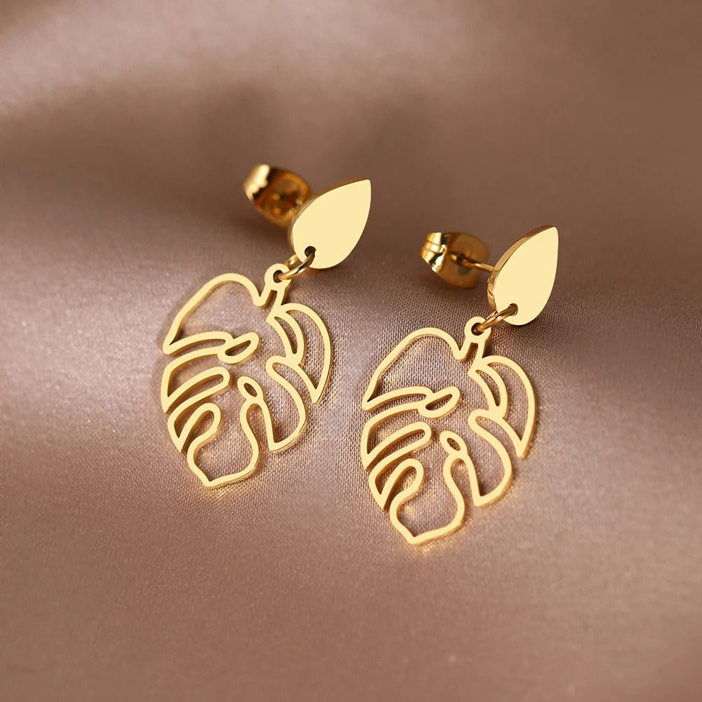 Stainless Steel Earrings Classic Vintage Water Drop Plant Leaves Fashion Pendants Earrings For Women Jewelry Party Girls Gifts