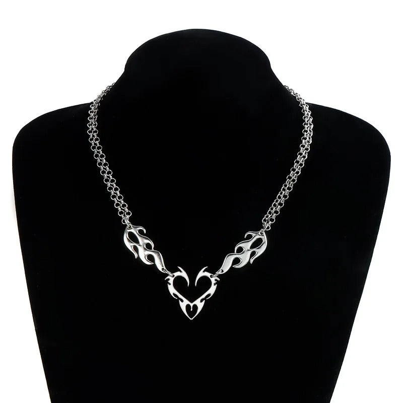 Stainless Steel Silver Color Thorn Heart Choker Necklace For Woman Man Punk Hip Hop Metal Hollow Clavicle Chain Necklace Jewelry