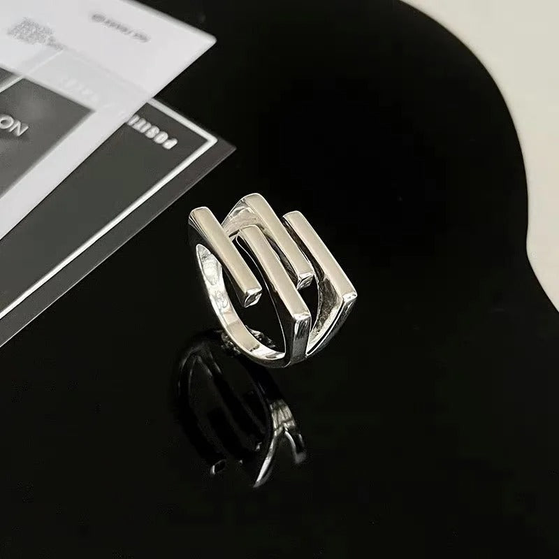 Unique handmade sterling silver ring featuring an irregular geometric design