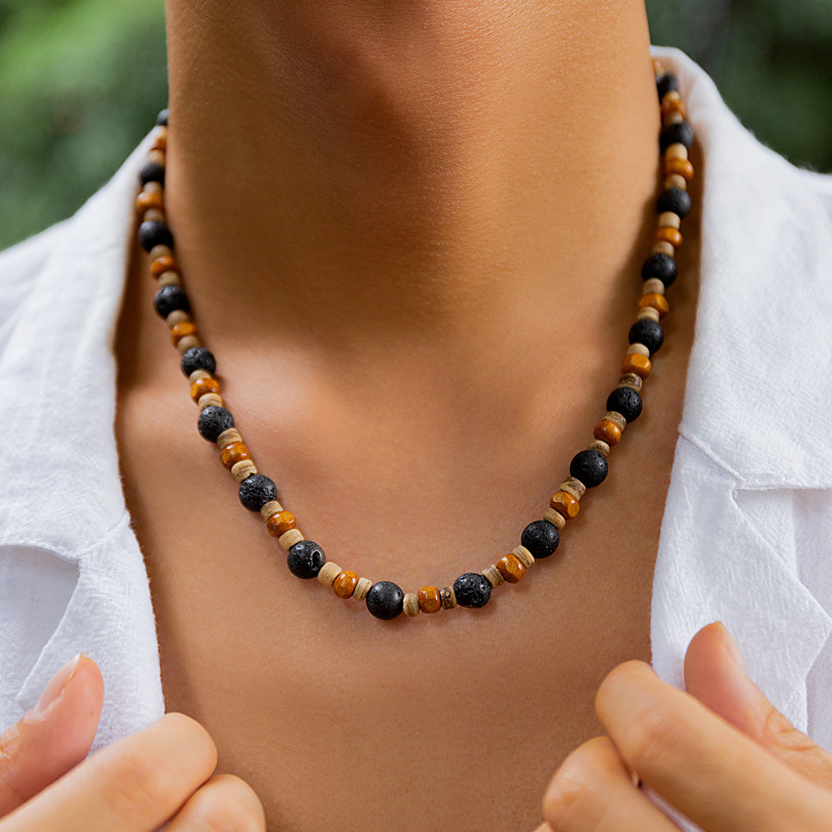 Stone and Wood Beaded Short Choker Necklace for Men Trendy Small Beads Collar Fashion Jewelry on Neck Accessories Male Gift