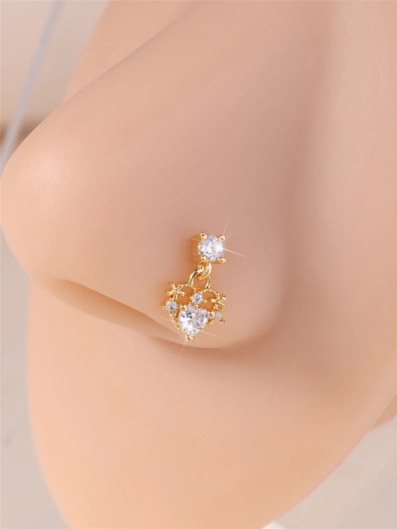 Thin Dangle Nose Studs Mini Pink CZ Heart Charm Dangle Nose Bone for Women Girl Cute Nose Piercing Jewelry Nostril Jewelry 24G