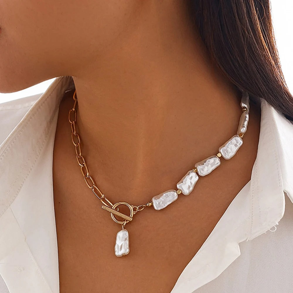 Trend Elegant Jewelry Wedding Baroque Pendant Necklace For Women Fashion Imitation Pearl Geometry Chain Choker Necklace