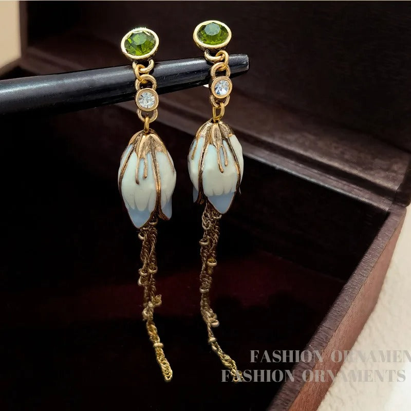 Trendy Jewelry Green Glass Pretty Lotus Long Chain Dangle Earrings For Women Girl Party Wedding Gift 2023 New