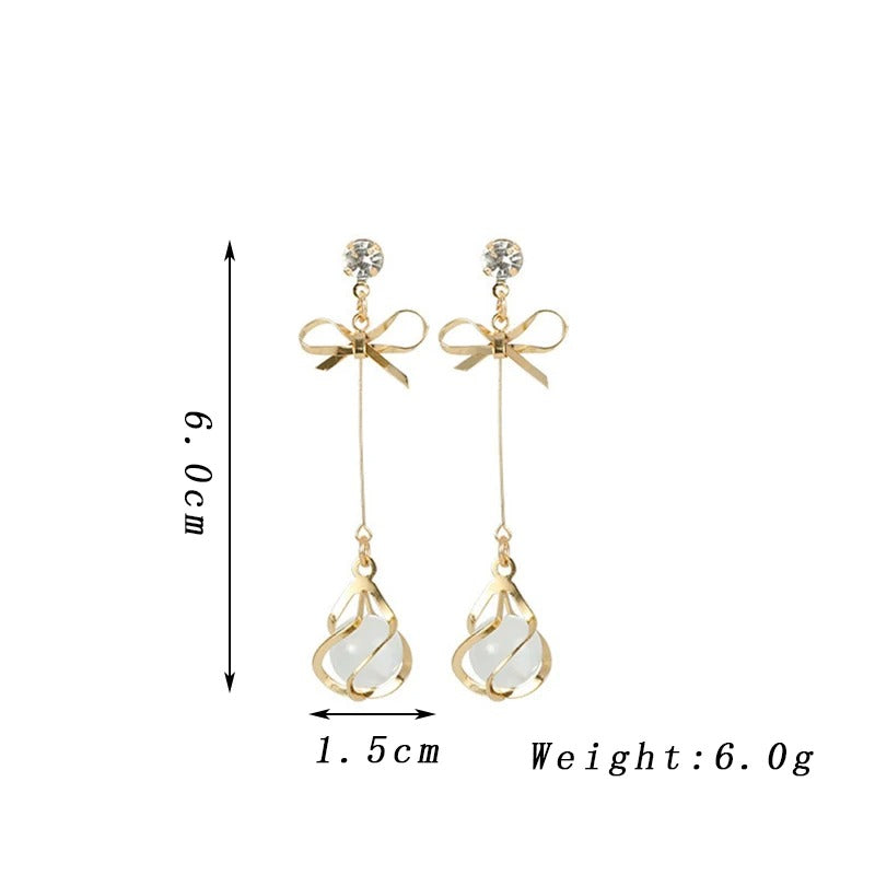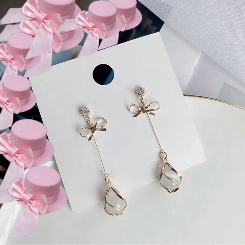 Trendy Metal Frame Dangle Opal Earrings for Women Golden Rhinestones Bow Knot Drop Earrings Wedding Party Long Jewelry Gift