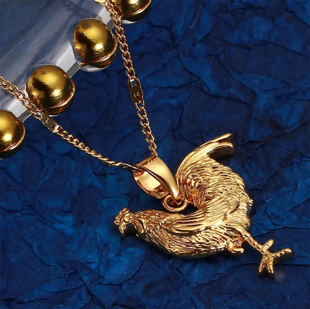 Stylish women’s gold color necklace featuring a unique rooster/chicken pendant