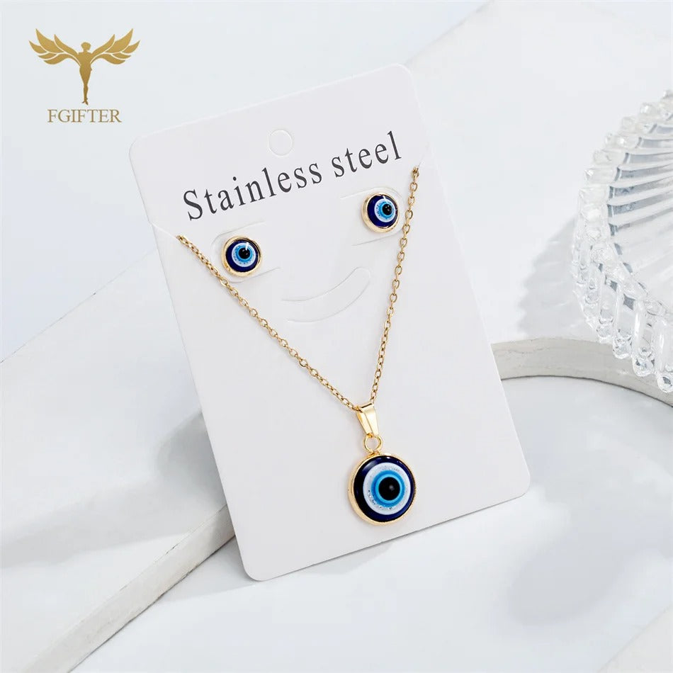 Turkey Evil Eye Jewelry Set Blue Resin Necklace & Stud Earrings