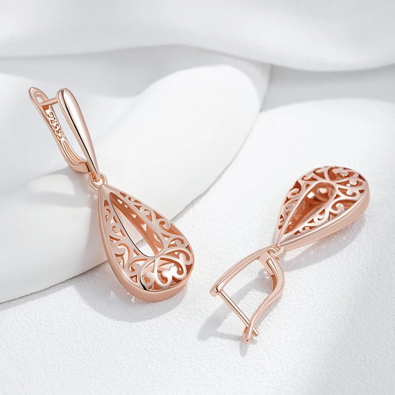 Glossy Rose Gold Dangle Earrings Women Flower Fashion Jewelry