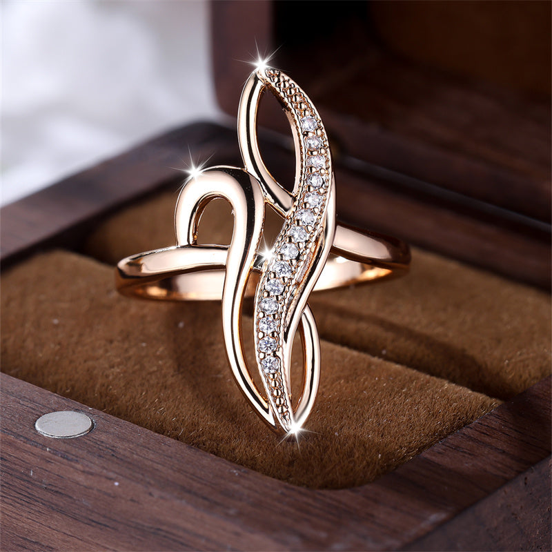 Unique Infinity Rings For Women Geometric Tree Leaf Wedding Bands Champagne Gold Color White Zircon Cocktail Ring Party Jewelry