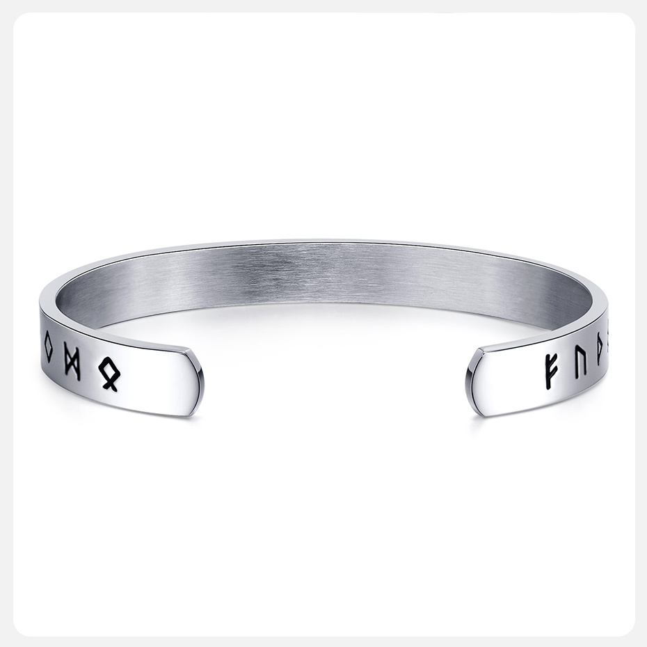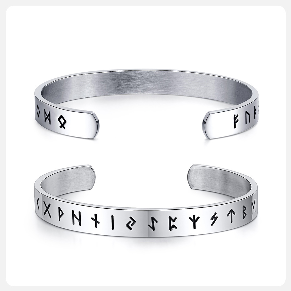 Viking Bracelets for Men Nordic Viking Rune Letters Amulet Cuff Bangle Vintage Punk Rock Boy Wristband