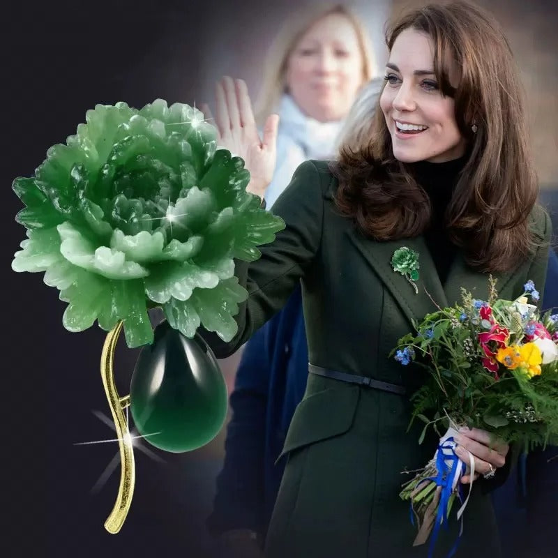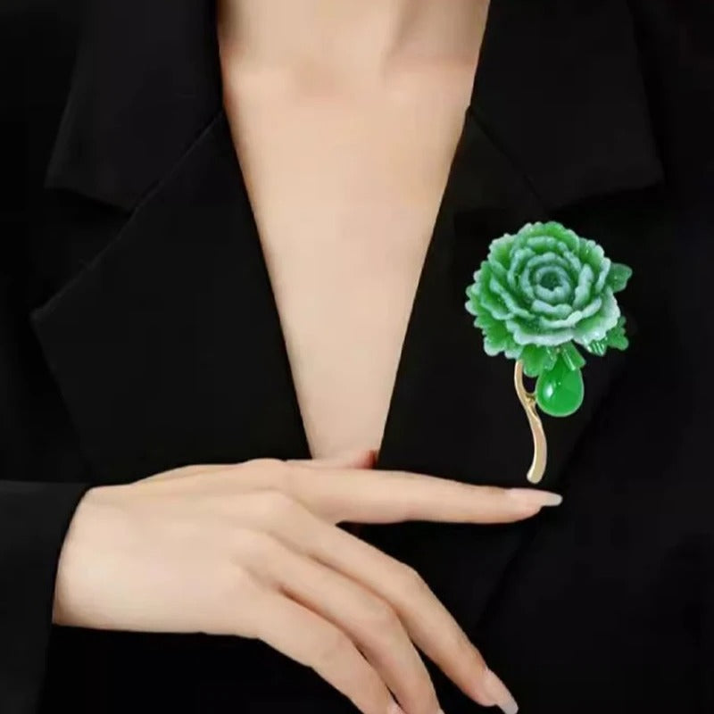 Vintage Resin Stone Green Peony Brooch for Woman Flower Lapel Pins Chinese Style Party Wedding Suit Coat Jewelry Gifts