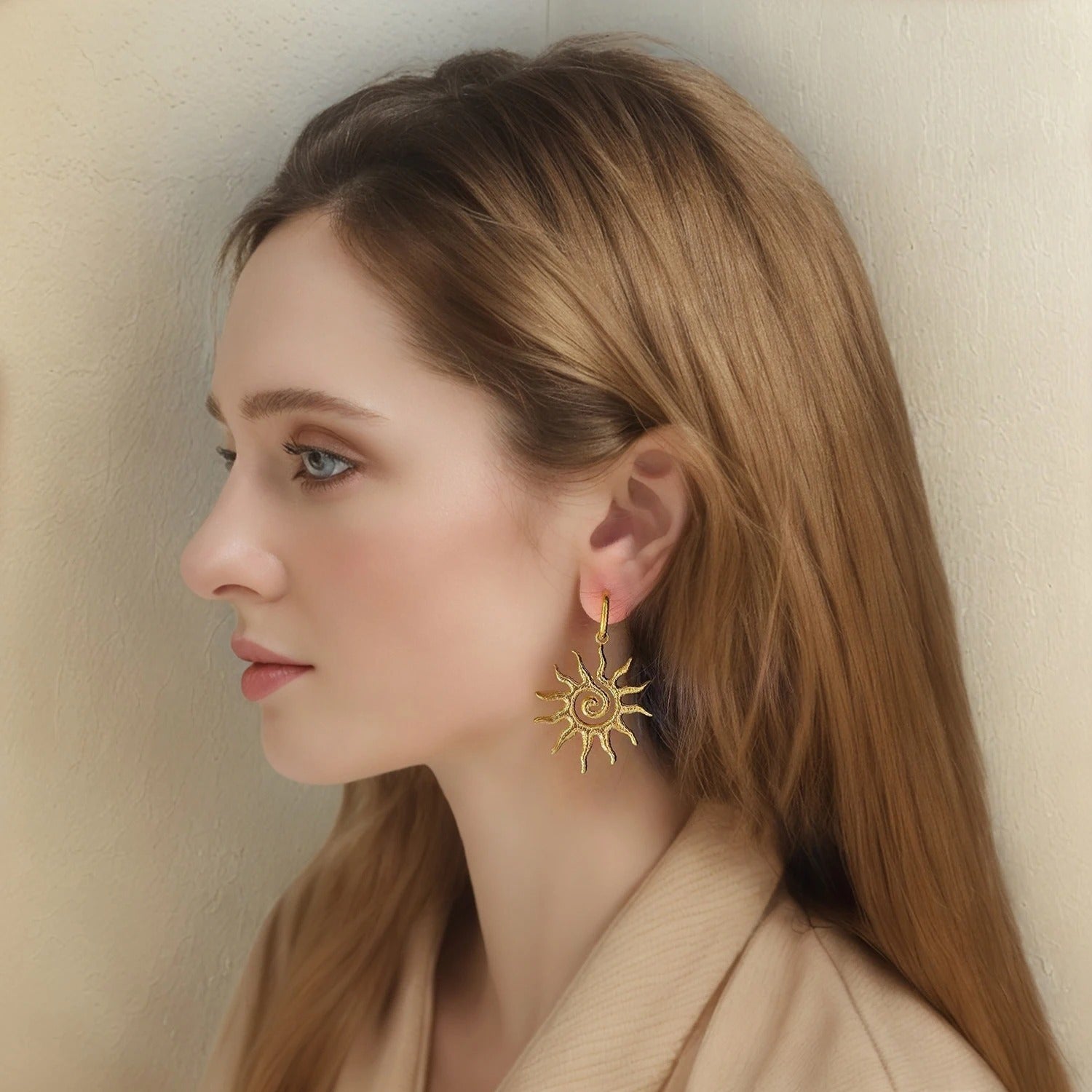 Women’s Golden Sun Geometric Drop Earrings Fashion Trend Jewelry Gift