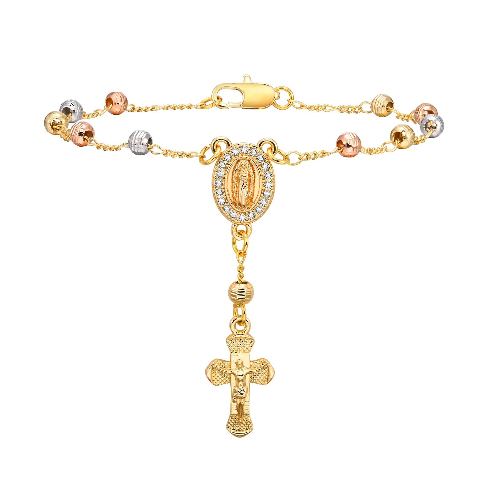 Virgin Mary Rosary Cross Bracelet Adjustable for Women & Girls