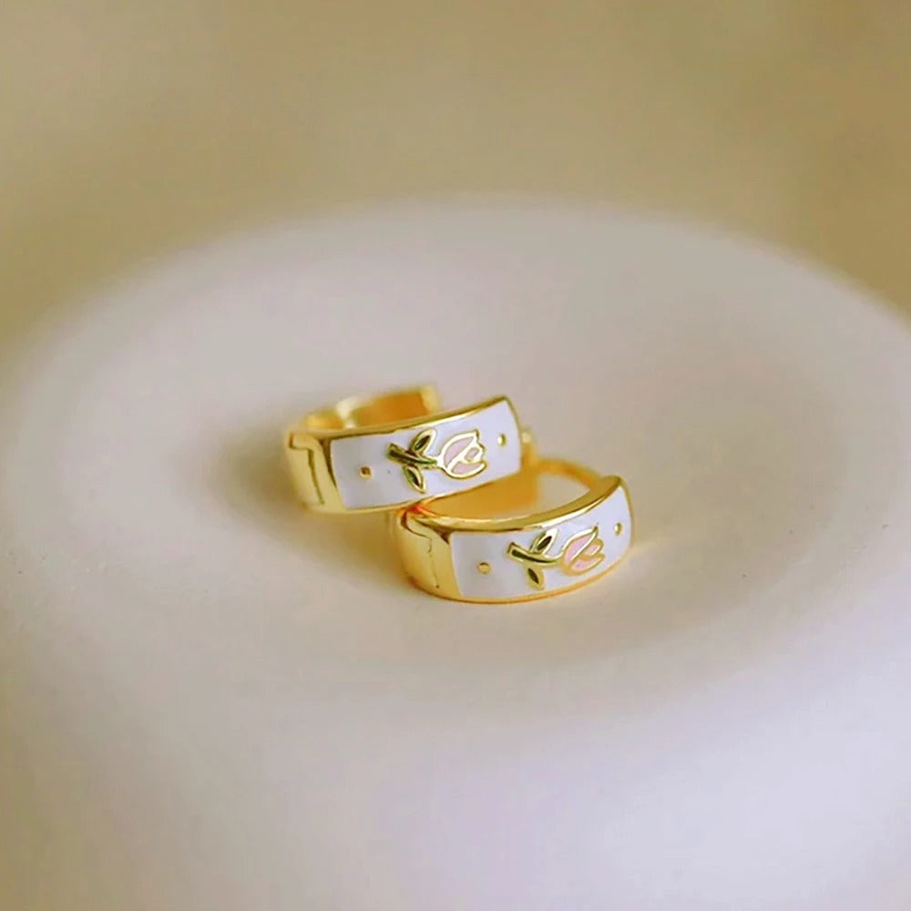 Floral Tea Cup Hoop Earrings Spring Summer 14K Gold Women