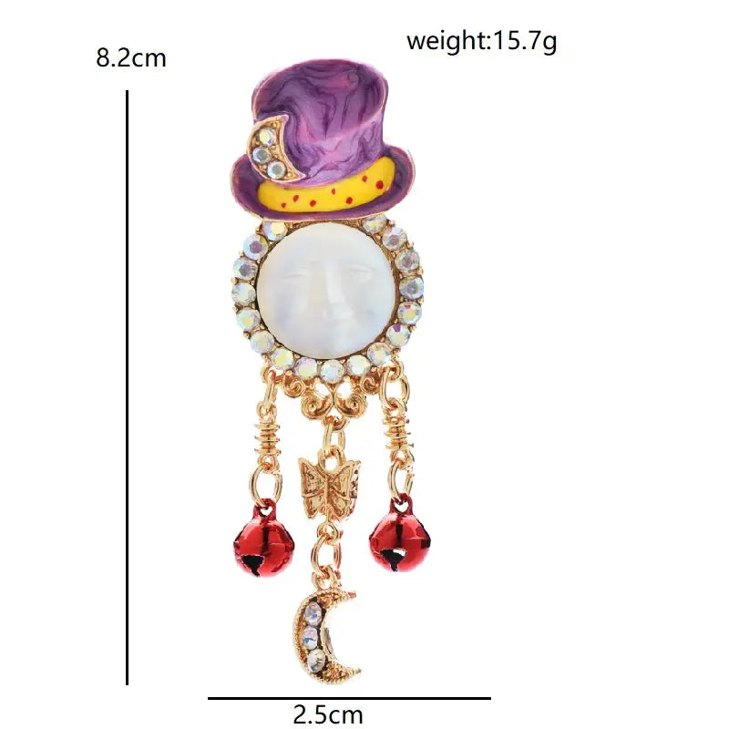 Wuli&baby Wear Hat Sun Face Tassel Brooches For Women Lady Enamel Beautiful Vintage Figure Party Casual Brooch Pins Gifts