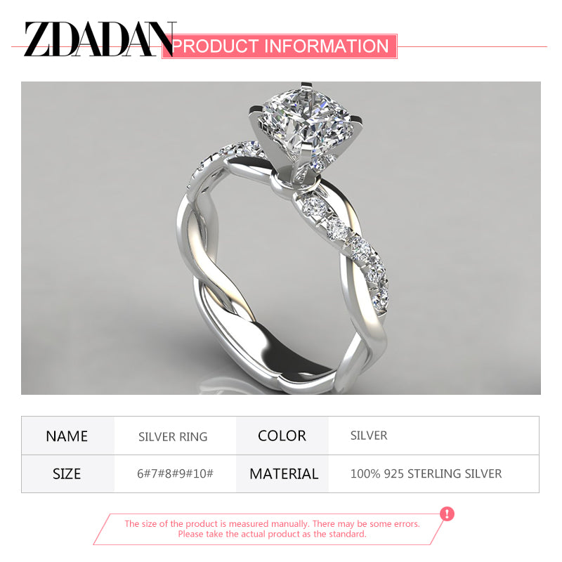 ZDADAN 925 Sterling Silver AAA White Cubic Zircon Ring For Women Wedding Jewelry Party Gift