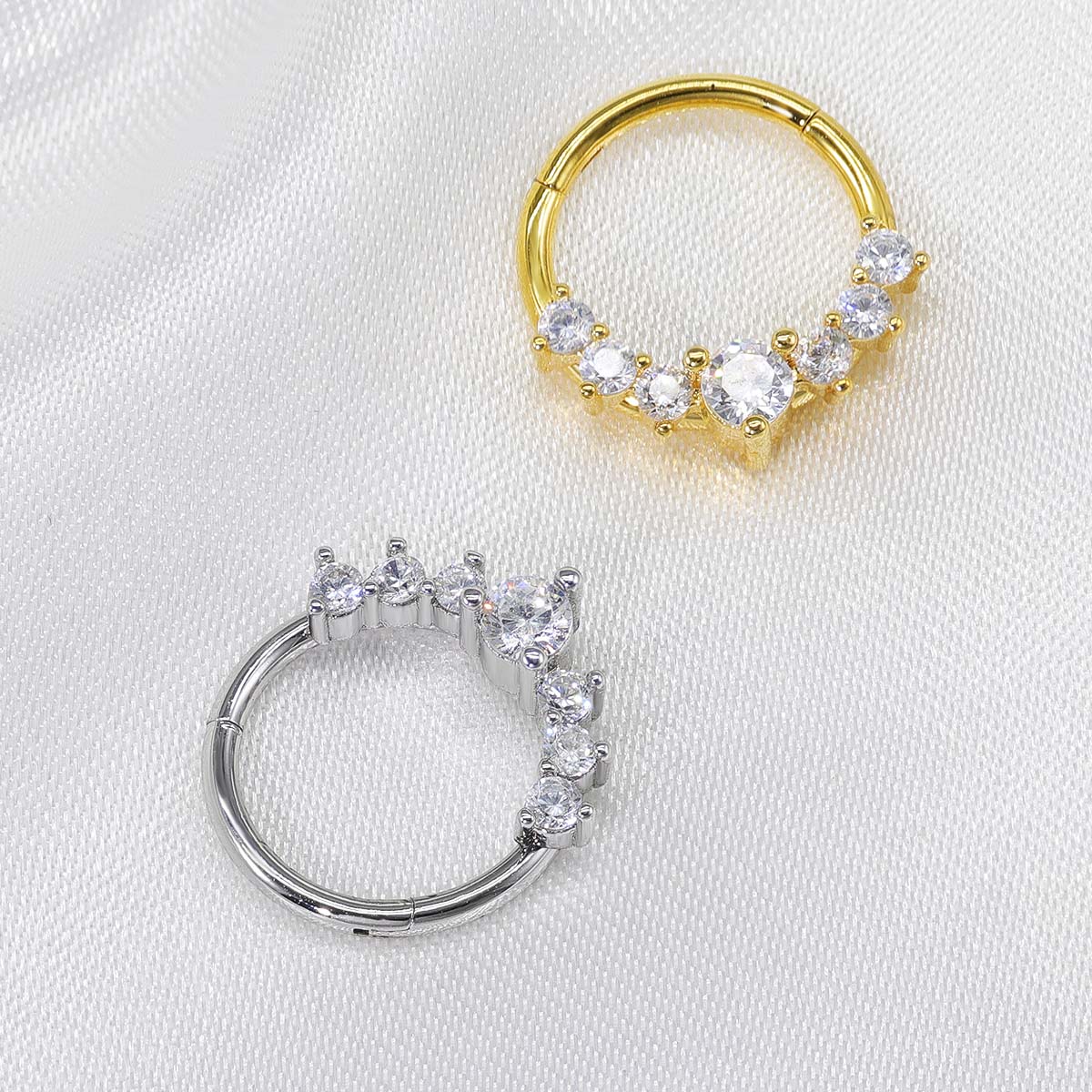 Zircon Hinged Nose Ring Stainless Steel Septum & Hoop Piercing
